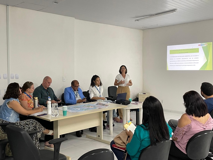 Em seguida, a coordenadora de Educação Ambiental da Secretaria de Estado da Educação, Avanne Dominici, fez uma breve apresentação sobre ações que vêm sendo desenvolvidas pela SEDUC em municípios do Maranhão e da institucionalização das Comissões de Meio Ambiente e Qualidade de Vida (COM-VIDA), na rede estadual, por meio da Portaria nº 128, de 14 de fevereiro de 2023. “Temos trabalhado permanentemente para envolver os estudantes nesta temática e estamos conseguindo alguns resultados importantes. Sabemos que a problemática ambiental é grande e caótica, mas que, com esforço coletivo, podemos obter resultados positivos”.