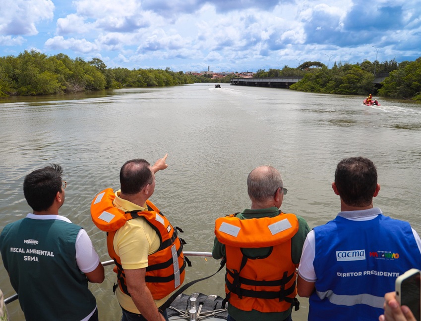Neste domingo, 3, o governador Carlos Brandão, acompanhado do ministro das Cidades em exercício, Hildo Rocha, do presidente da Agência Executiva Metropolitana (Agem), Leônidas Araújo, e de representantes da Companhia de Saneamento Ambiental do Maranhão (Caema) e da Secretaria de Estado do Meio Ambiente (Sema), vistoriou o curso de água do Rio Anil, um dos principais de São Luís. O objetivo da vistoria técnica foi avaliar a situação ambiental e irregularidades habitacionais nas margens do Rio Anil.
