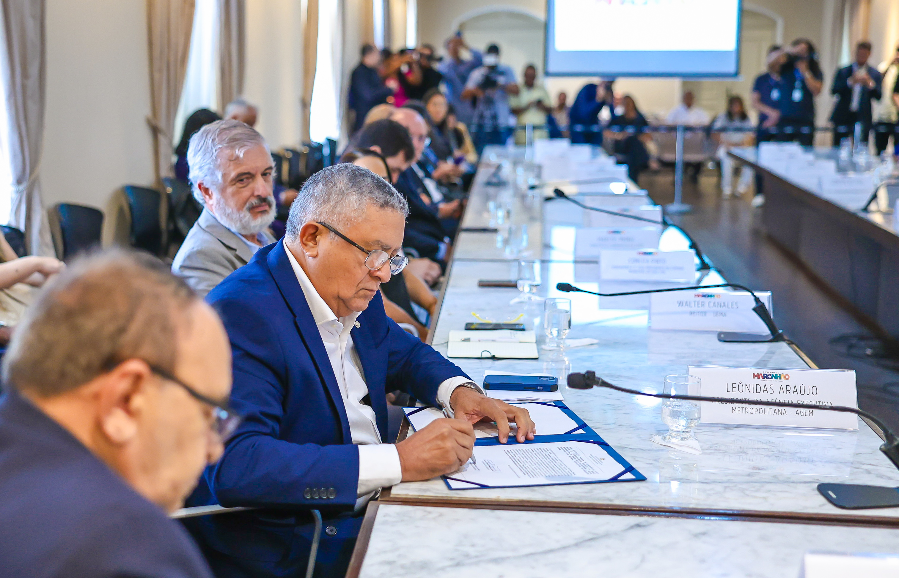 O Governo do Estado, por meio da Agência Executiva Metropolitana (Agem), assinou nesta quarta-feira (22), no Palácio dos Leões, duas Ordens de Serviço para a implementação de importantes ações no Maranhão. A primeira trata-se da elaboração do Plano Diretor de Desenvolvimento Integrado dos 13 municípios da Região Metropolitana da Grande São Luís (PDDI/RMGSL) e a segunda refere-se à construção da Praça dos Açores, localizada no Centro Histórico da cidade.
