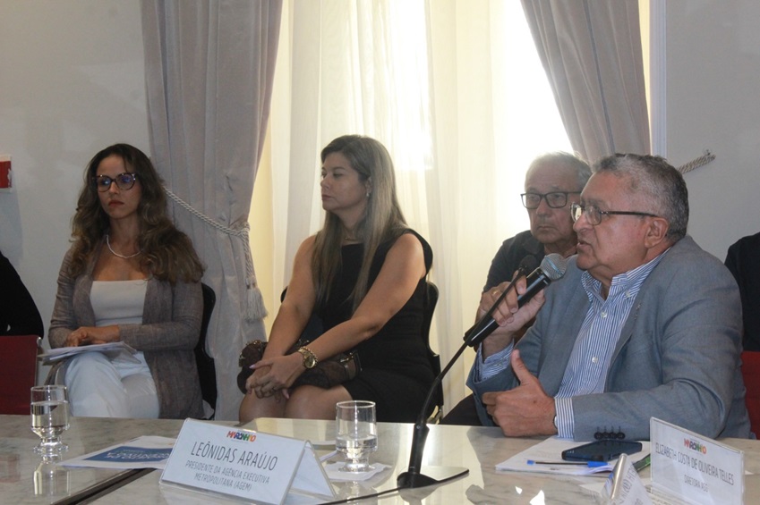 O presidente da Agência Executiva Metropolitana (AGEM), Leônidas Araújo, falou da Conferência Metropolitana como um momento imprescindível para a sensibilização dos prefeitos da Região Metropolitana e da oportunidade para resolução dos problemas dos lixões por meio dos recursos do Novo PAC do Governo Federal. “A pauta desta reunião se deu por meio de uma resolução tarifária para os resíduos sólidos da Região Metropolitana, um assunto muito importante no qual os prefeitos devem se sensibilizar para a situação. Pudemos tratar, também, do projeto com soluções para a redução de resíduos sólidos, que já foi apresentado ao Novo PAC, dando a oportunidade do benefício aos 13 municípios da Região Metropolitana”, pontuou o titular da Agem.