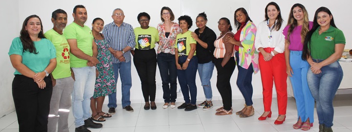 Nesta quarta-feira, trabalhadores de cooperativas e associações de catadores de materiais recicláveis da Associação de Catadores de Materiais Recicláveis de São José de Ribamar (ASCAMR), Cooperativa de Catadores de Materiais Recicláveis D’Ouro (COOPEROURO), Cooperativa de Reciclagem e Reaproveitamento de Madeiras (COOPVILA) e Cooperativa de Catadores de Materiais Recicláveis de São Luís (COOPRESL) reuniram-se na AGEM para participar de uma roda de conversa com a proposta de apresentação do Manifesto de Transporte de Resíduos (MTR). A exposição foi feita por Luciana Lopes, sócia-fundadora da Visões da Terra, e pelo coordenador nacional de capacitação da Visões da Terra, José Pereira, mediados pela arquiteta e urbanista do Setor Ambiental, Social e Governança (ASG/AGEM), Daniela Pimentel.